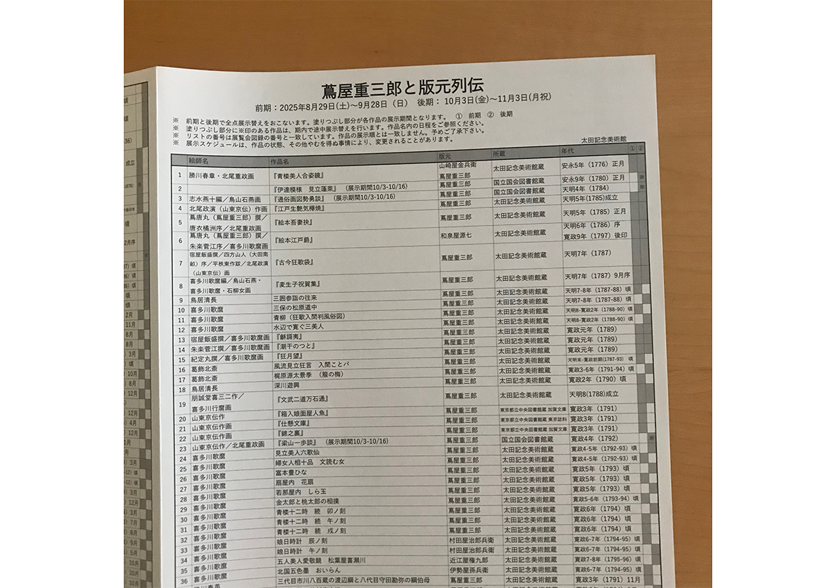(写真1)五館連携の「蔦重手引草」の案内(表)。